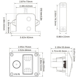 - Switch activates the Bilge Pump at a 41.0mm(1.6″)fluid level and deactivates at a 9.5mm(0.37″) fluid level.